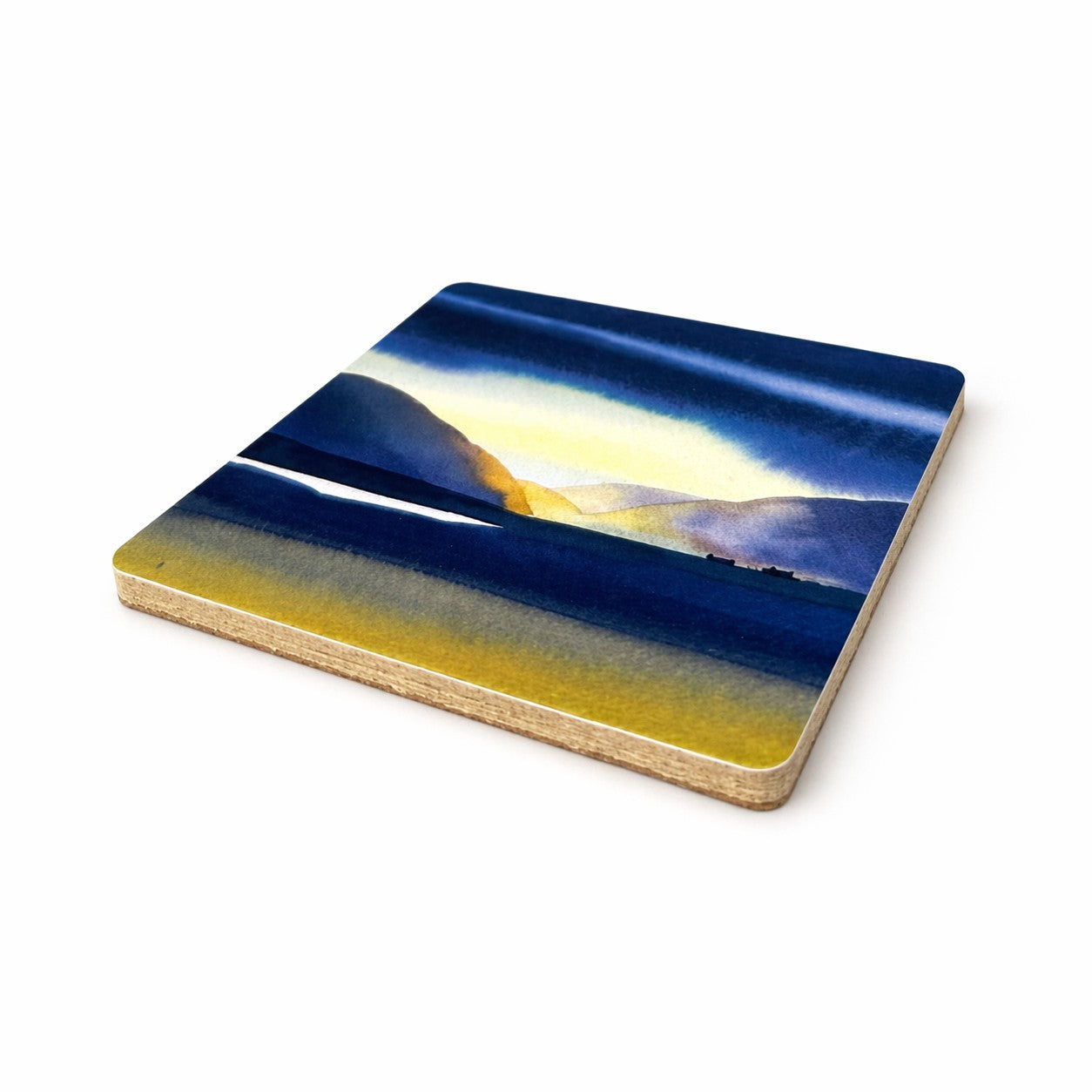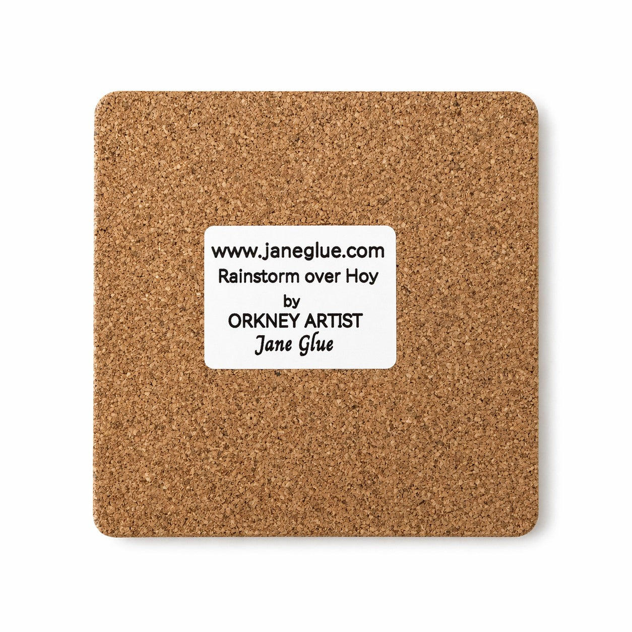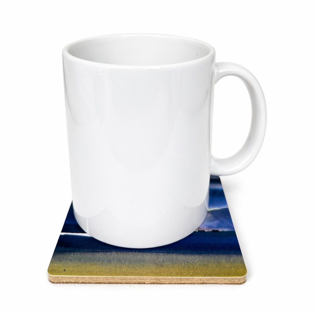 A coaster printed with a watercolour painting by Orkney artist Jane Glue.